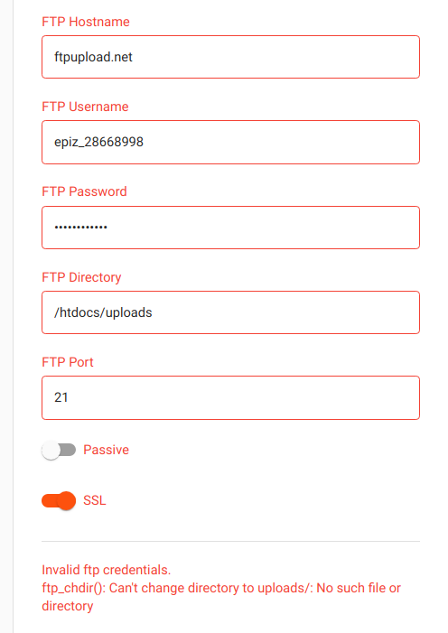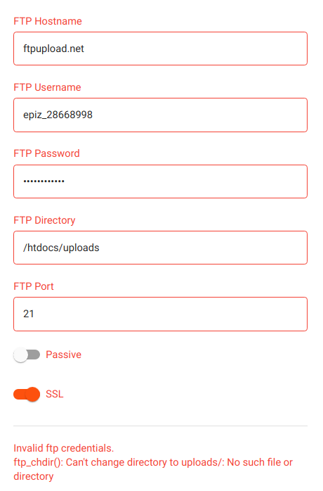 Hi, I’m setting up on my website, for all files uploaded on it to come to the FTP of my InfinityFree hosting. I’m using BeDrive, however, it’s giving an error when I’m going to save.
