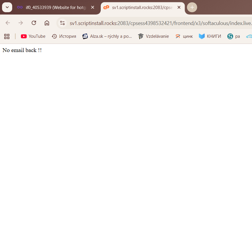 I was building a website on InfinityFree using Blocksy, and I only had one product left to add and the main page to edit — literally just adding photos, some ads, and a bit of text. The page got stuck, showing that two people were editing it and that I needed to click “Refresh.” I did this twice, after which some changes were accepted, but then I could no longer access the CPanel or ScriptInstaller. It showed the error “No email address!!”.