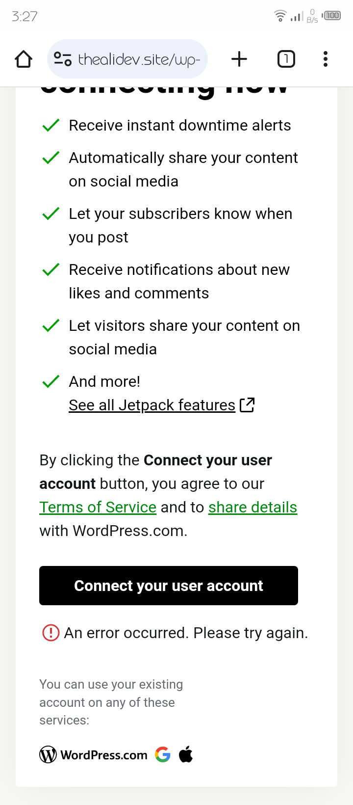 Jetpack can’t be connected , see screenshot