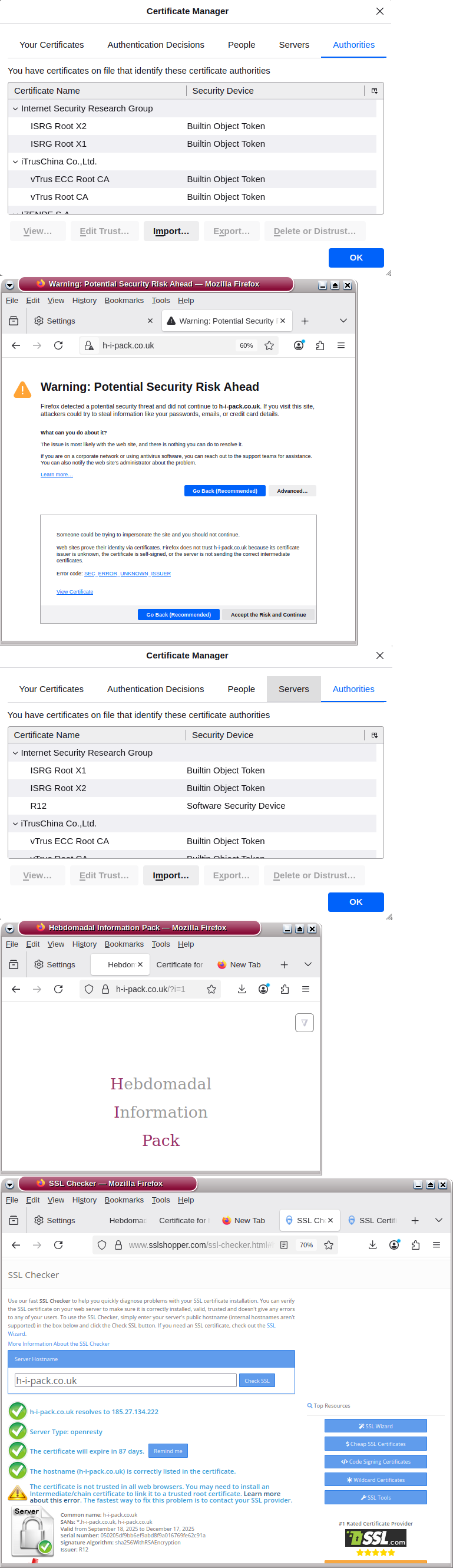 Can the R12 intermediate certificate be added to the h-i-pack.co.uk certificate on the server?