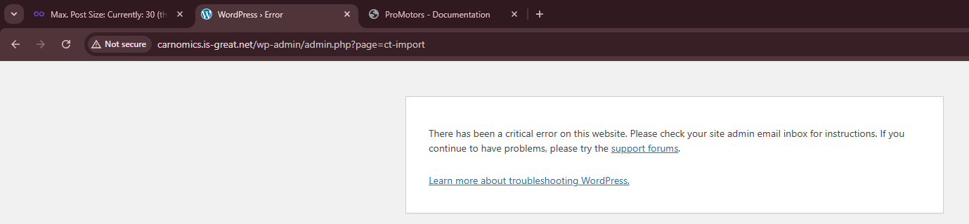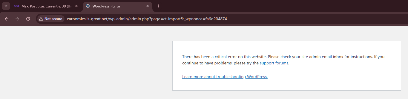 There has been a critical error on this website. Please check your site admin email inbox for instructions. If you continue to have problems, please try the support forums.