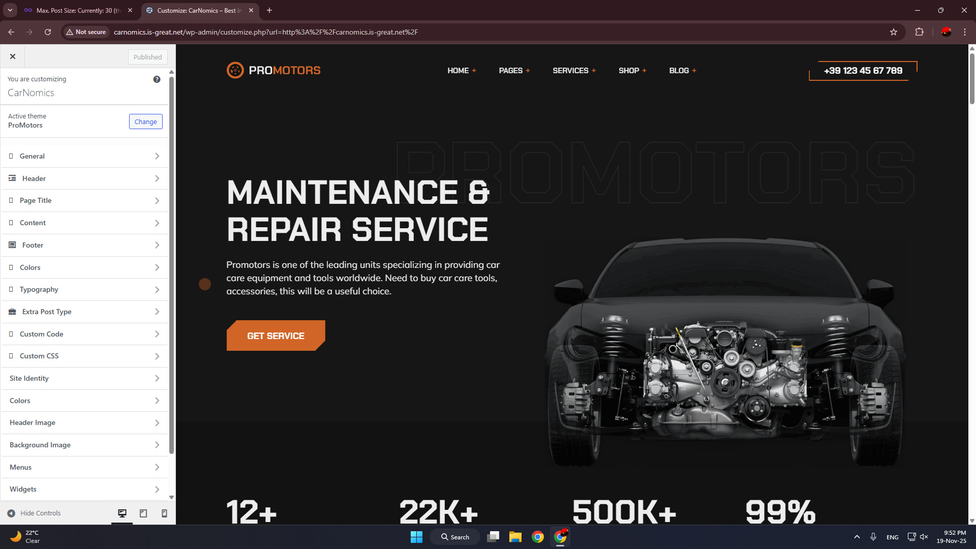 https://carnomics.page.gd/. Not problem with site, it’s with Workpress.