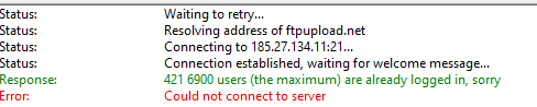 Response: 421 6900 users (the maximum) are already logged in, sorry