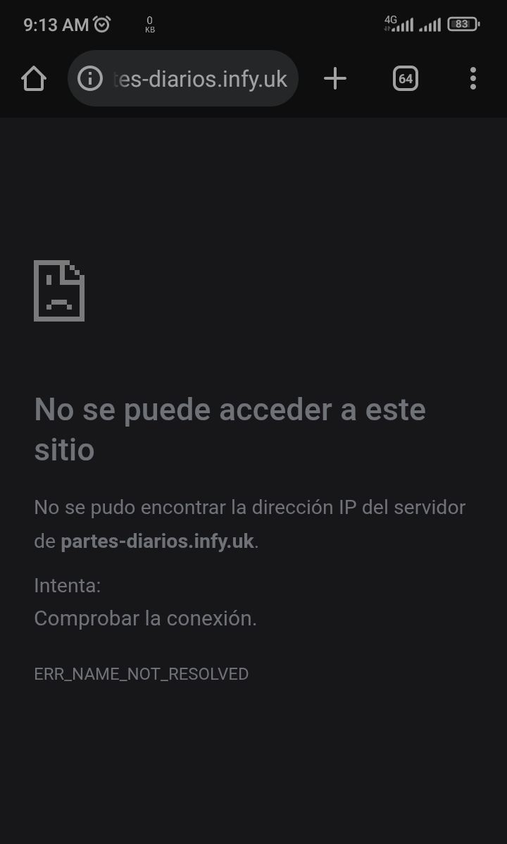 No se pudo encontrar la dirección IP del servidor de partes-diarios.infy.uk.