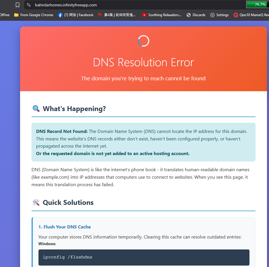 The issue started right after I deleted my old site (bahirdarhomes.infinityfreeapp.com) and used that name on my new site.