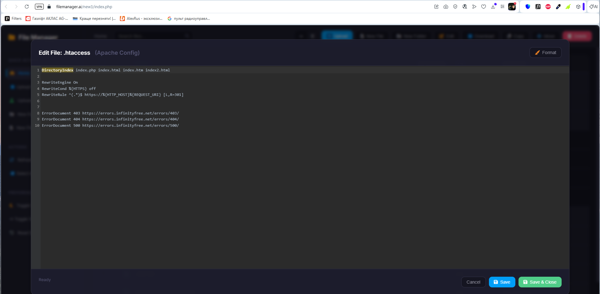 Not the one in the root / directory, the one in the /htdocs/ directory or /noosphere.free.nf/htdocs/ directory.