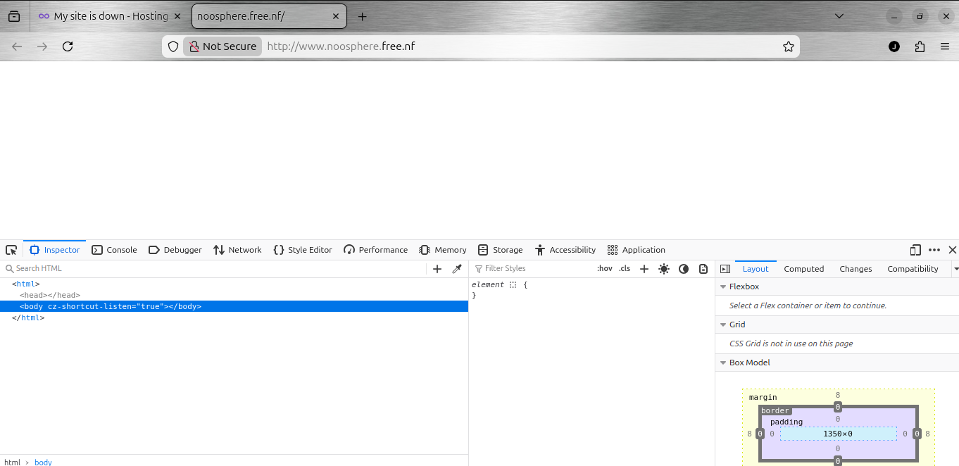 Also, are you editing the index.html file in either /htdocs/index.html or /noosphere.free.nf/htdocs/index.html?