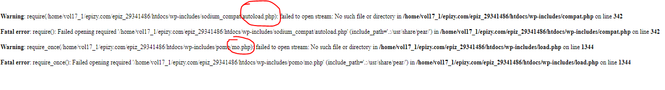 Eu estou enviando a pasta wp-includes conforme vocês orientaram. Só que dá erro.