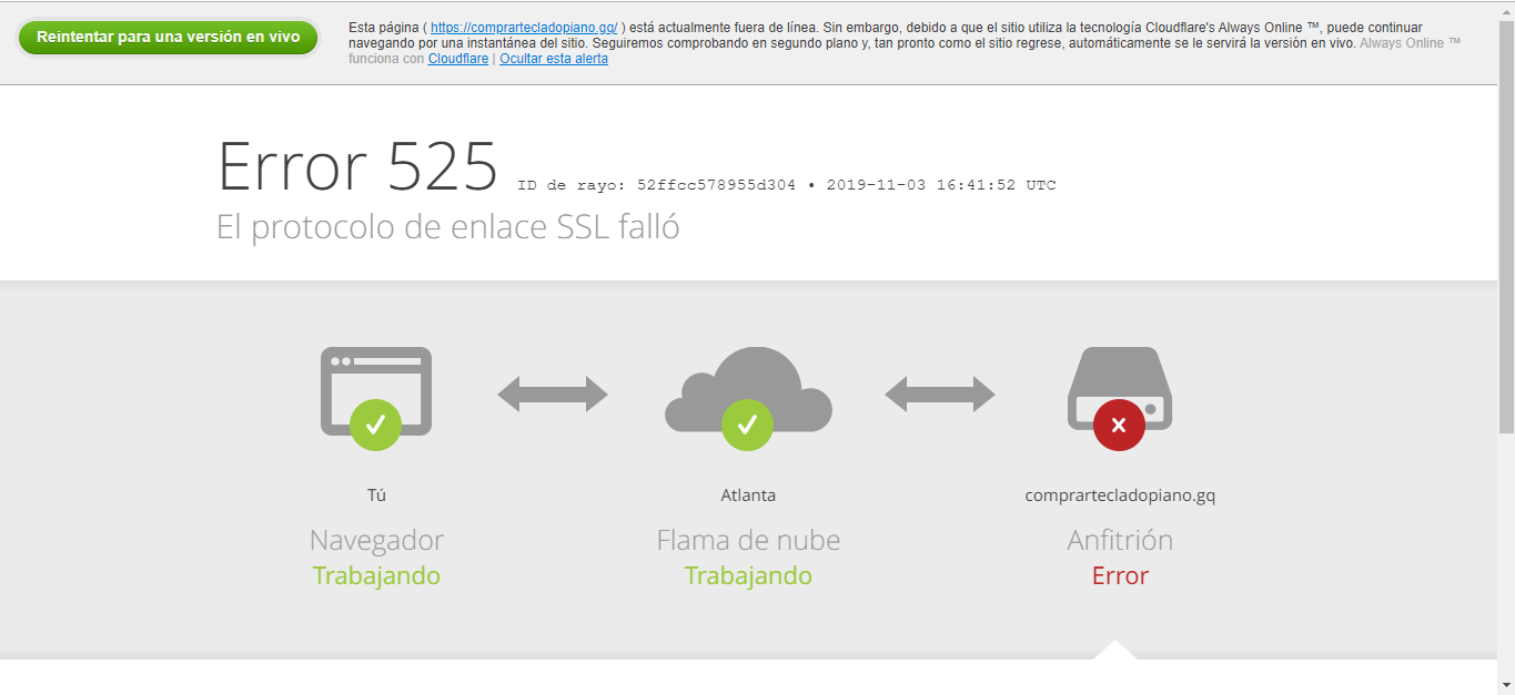 Necesito ayuda con Error 525: El protocolo de enlace SSL falló
