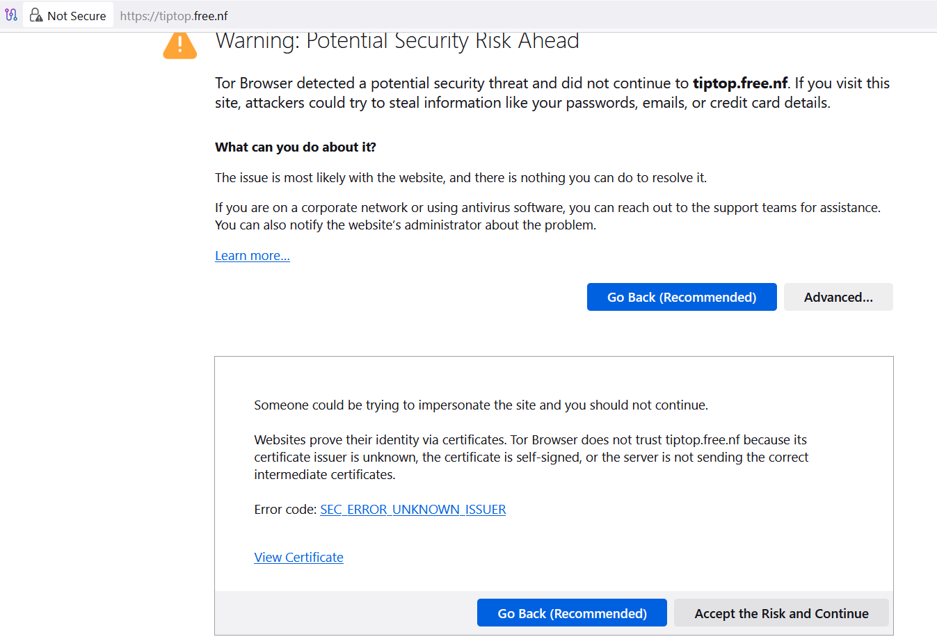 That being said, your website worked (and continues to work) fine for me. I only got an issue when visiting via Tor: