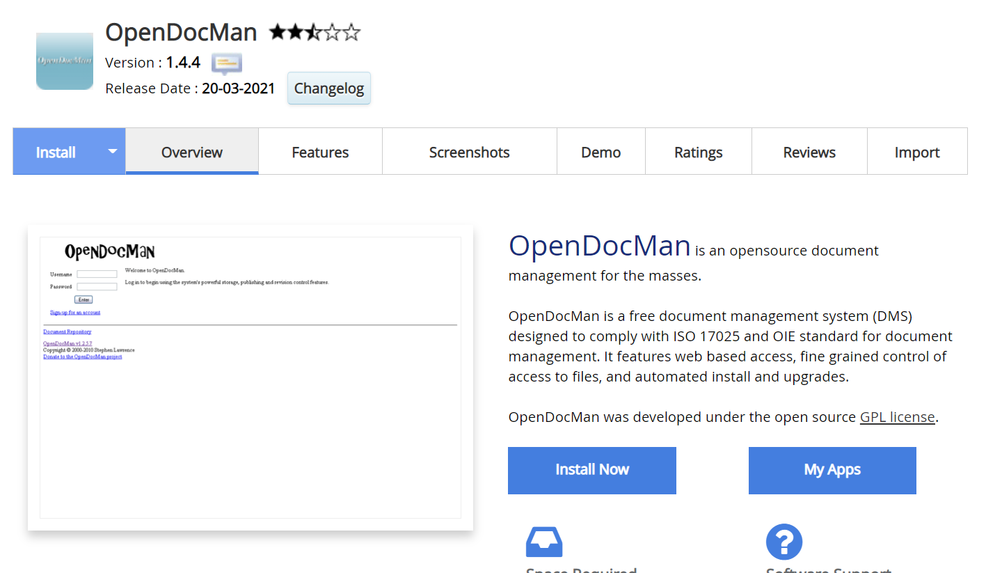 No. You can install OpenDocMan in any AMP (Apache + MySQL + PHP) environment.