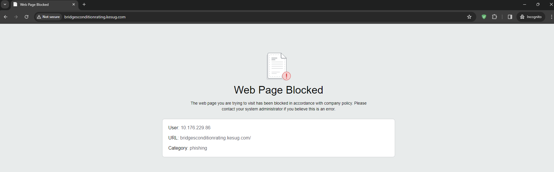 Because that message is generated by some kind of internet filter on your end. We have no control over any internet censorship done by your organization.