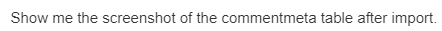 Show me the screenshot of the commentmeta table after import.