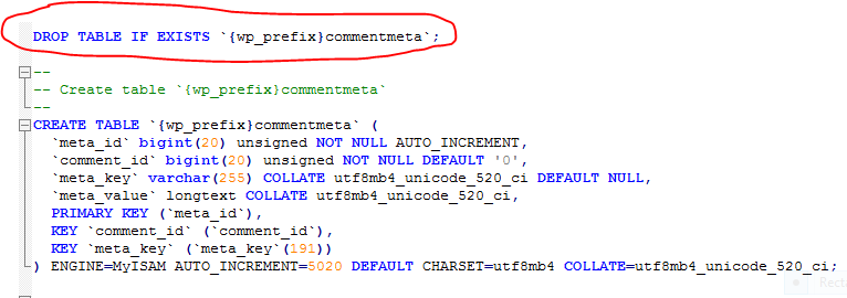 Let’s start by exporting xxxx_commentmeta from the old database. Once exported, add “DROP TABLE IF EXISTS {wp_prefix}commentmeta;” where {wp_prefix} is wpzv_