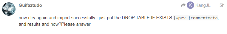 now i try again and import successfully i just put the DROP TABLE IF EXISTS {wpzv_}commentmeta; and results and now?Please answer