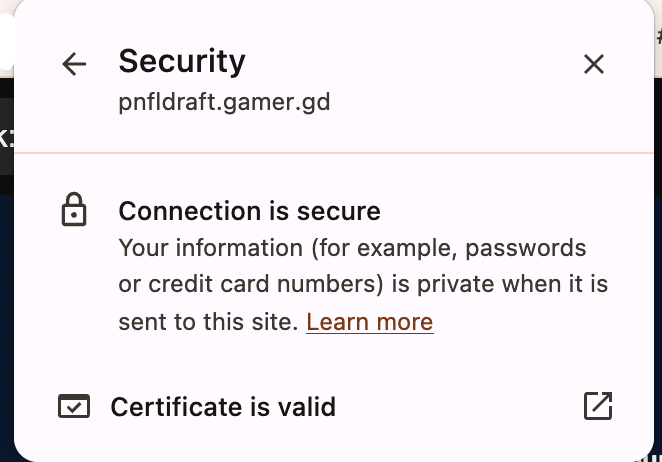Attackers might be trying to steal your information from pnfldraft.gamer.gd (for example, passwords, messages, or credit cards). Learn more about this warning