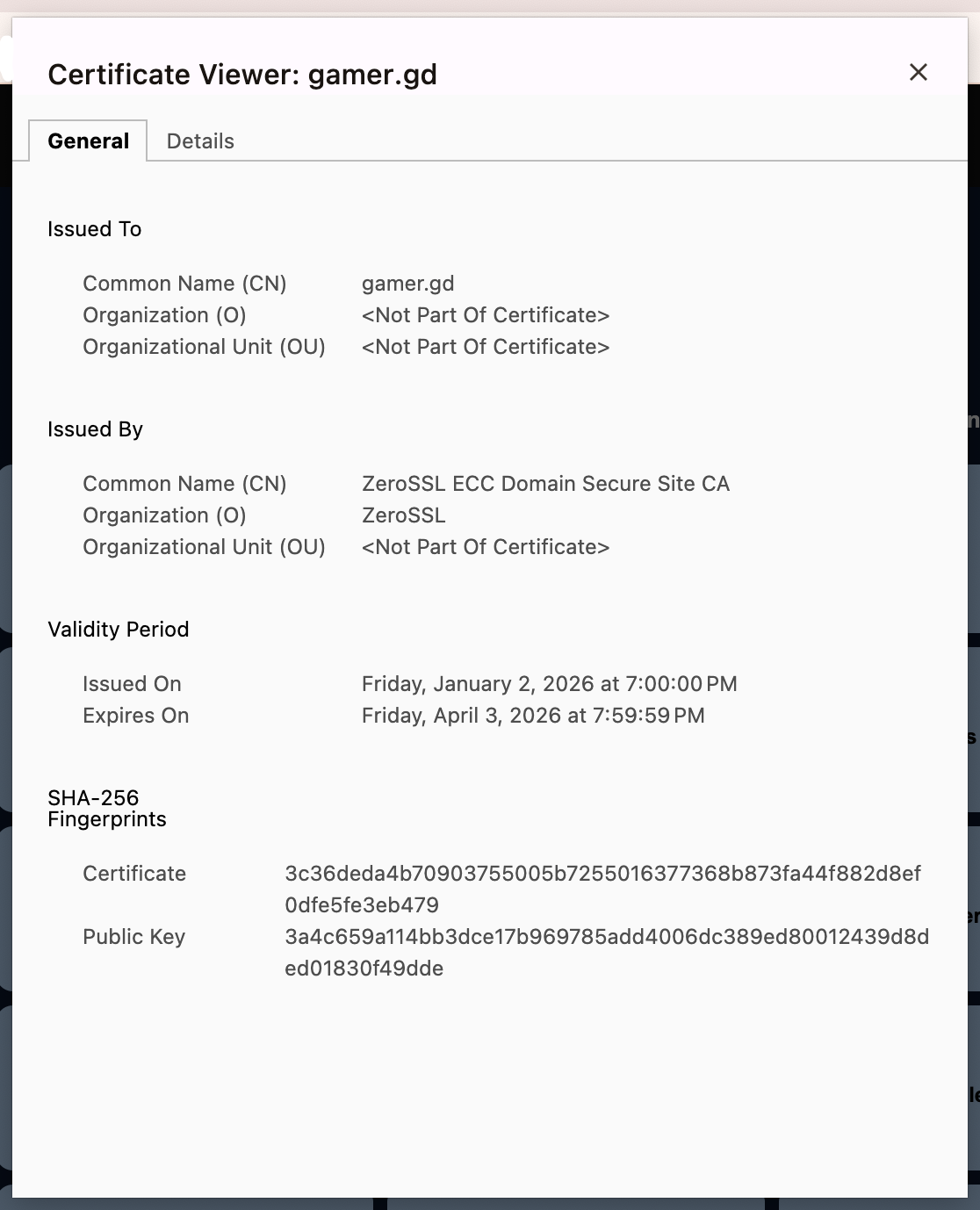 Your website is protected with an SSL certificate from ZeroSSL, a large and well known SSL provider (albeit a somewhat new one), along with a full CA chain for maximum browser compatibility.