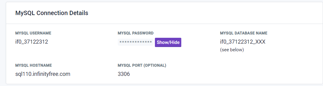 Our databases are not accessible from the internet. The sqlXXX.infinityfree.com hostnames look like valid DNS names, but they are not actually configured in DNS. And when they were, they would only return internal IPs, so you still wouldn’t be able to connect to them.