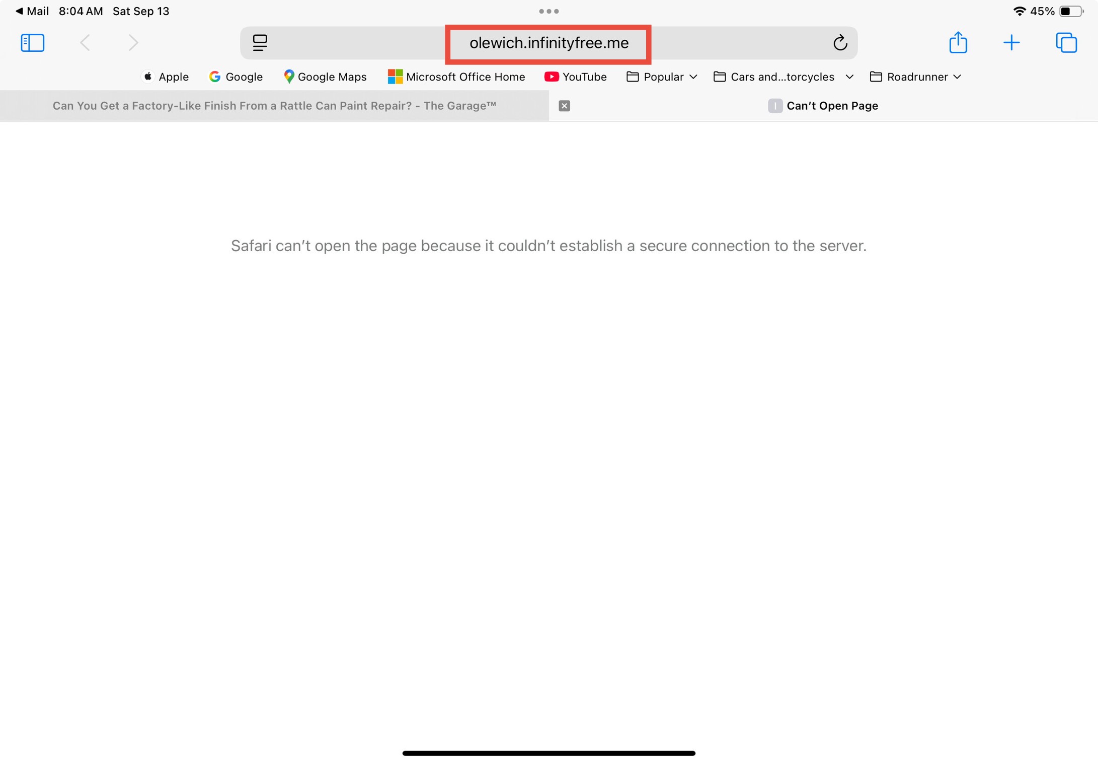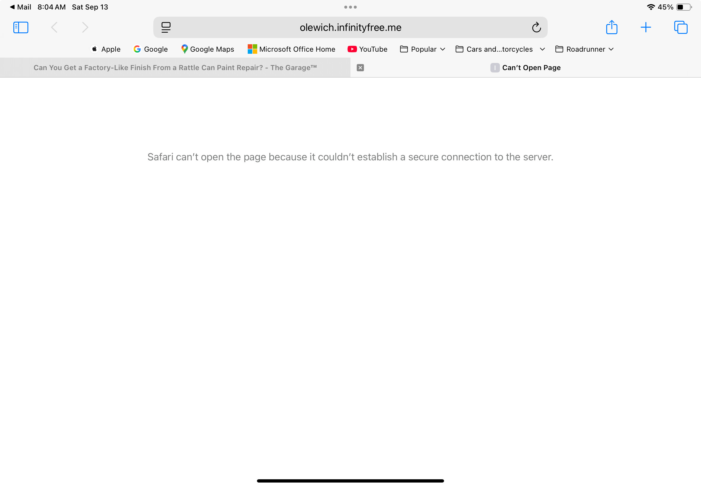Safari can’t open the page because it couldn’t establish a secure connection to the server.