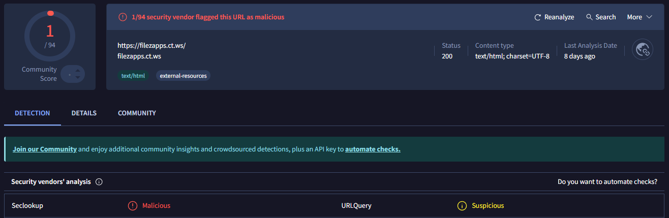 Is that the second screenshot? where its saying the URL was flagged as malicious by a 3rd party vendor (that might be google or some ISP’s do flag free hosting domains)