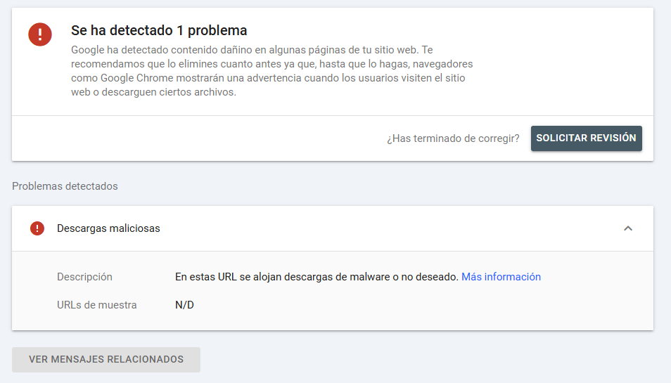 Google has detected harmful content on some pages of your website. We recommend that you remove it as soon as possible, as until you do, browsers like Google Chrome will display a warning when users visit the website or download certain files.