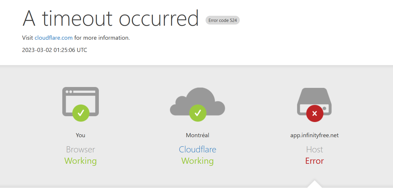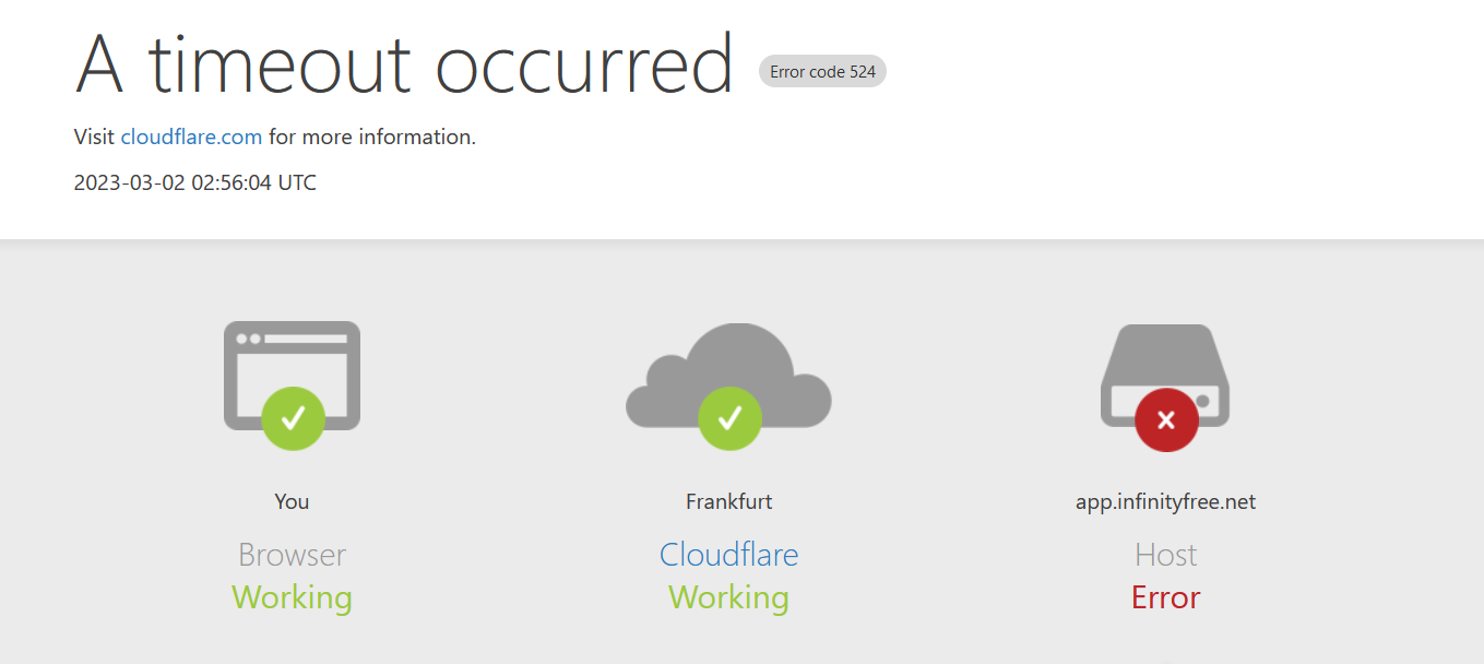 What URL actually says timeout? Does it show app.infinityfree.net in the address bar or eu.site.pro?