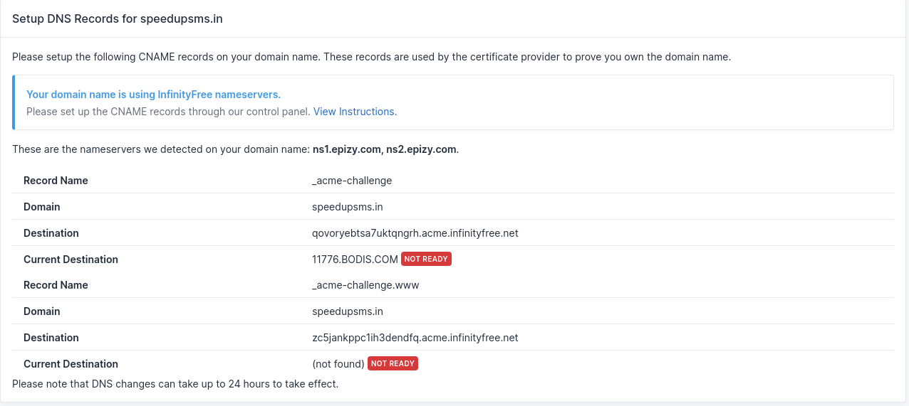 actual message is NOT READY state it is showing but i have updates my CNAME RECORDS properly but still it is showing same error