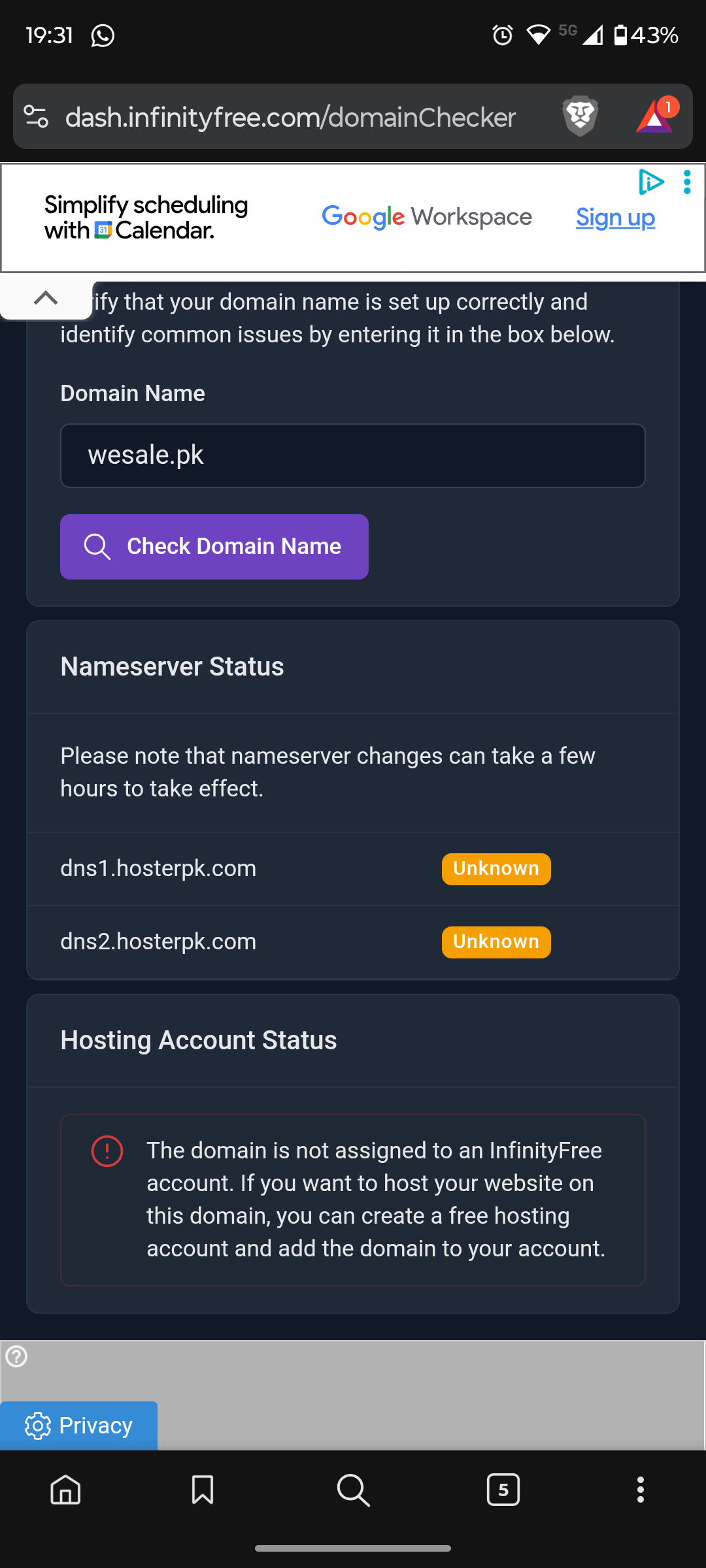 I added my custom domain wesale.pk about 72 hours ago and updated the nameservers at my domain registrar. The HTTP version (http://wesale.pk) works fine, but HTTPS doesn’t load at all. I’ve checked: - Nameservers are correctly pointed (verified at registrar) - DNS propagation checker shows the domain is resolving - The domain is a .pk domain (Pakistan) - SSL certificate status in control panel shows as “pending”