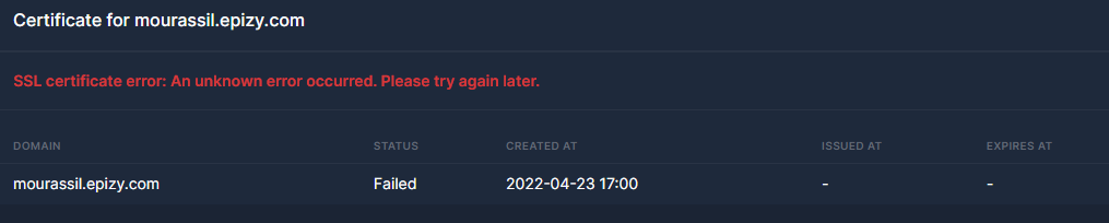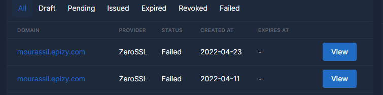 When i try to renew my zero SSl certificate it fails whiteout telling the reason.