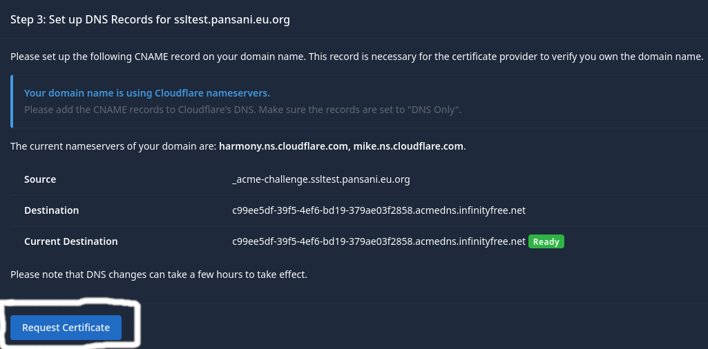 c85ee635-eda0-41dd-b87c-66040f39b956 .acmedns .infinityfree .net Ready