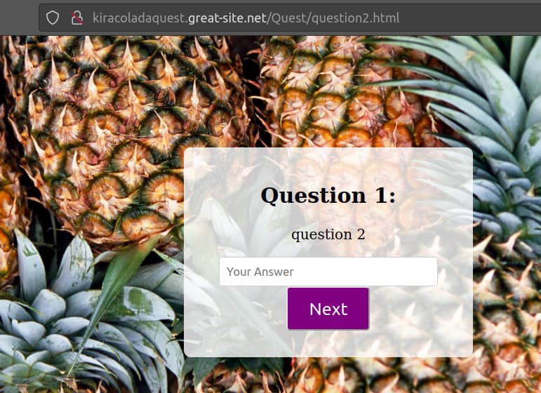http://kiracoladaquest.great-site.net/Quest/question1.html this should take you to the next subpage but it does not