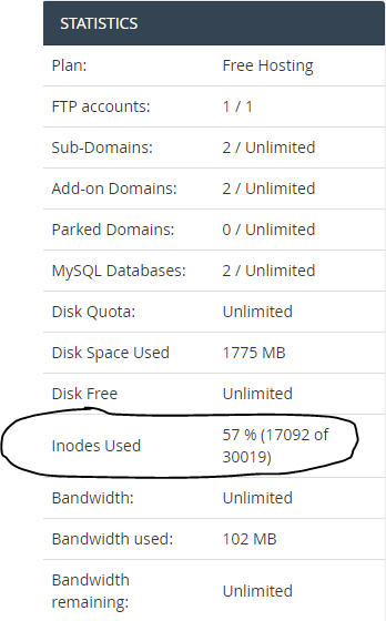 Each folder, image, file is one inode. InfinityFree allows 30,000 (So up to 30,000 files, folder, ect. combined)