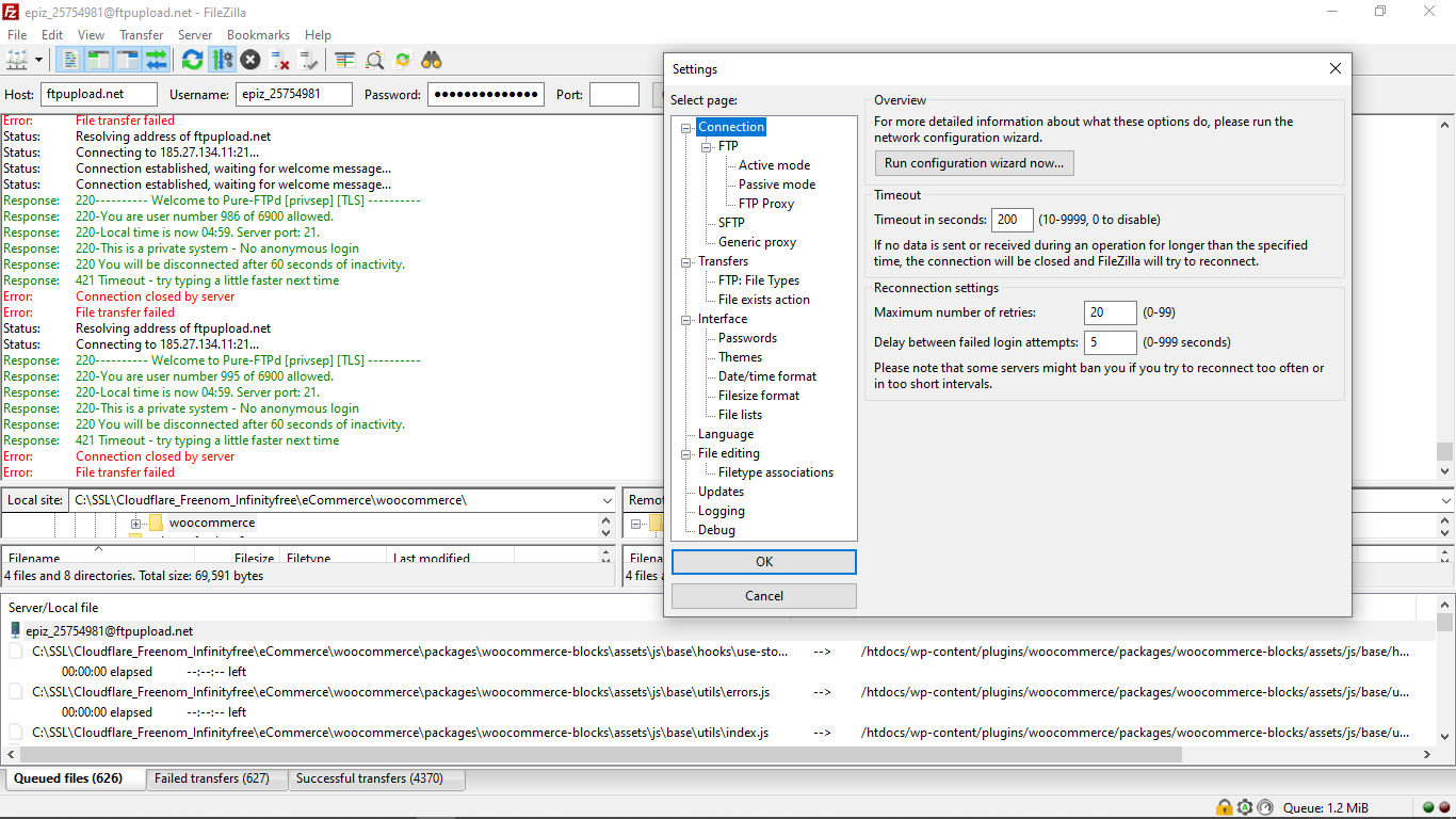 I merged your FTP transfer issues topics. Please don’t create multiple topics about the same issue.