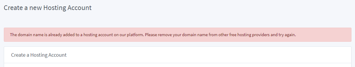 The domain name is already added to a hosting account on our platform. Please remove your domain name from other free hosting providers and try again.