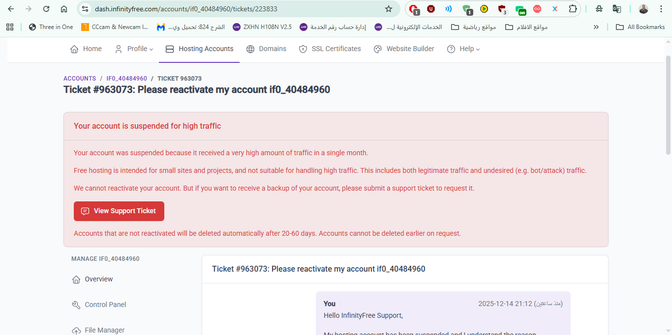My hosting account has been suspended.