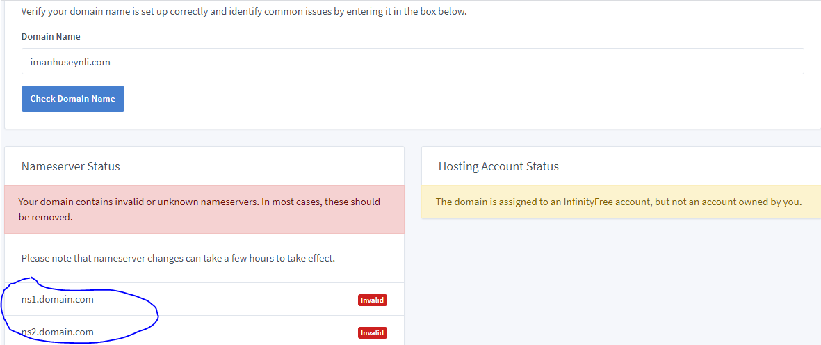 Pls change nameservers to ns1.epizy.com and ns2.epizy.com for a start.