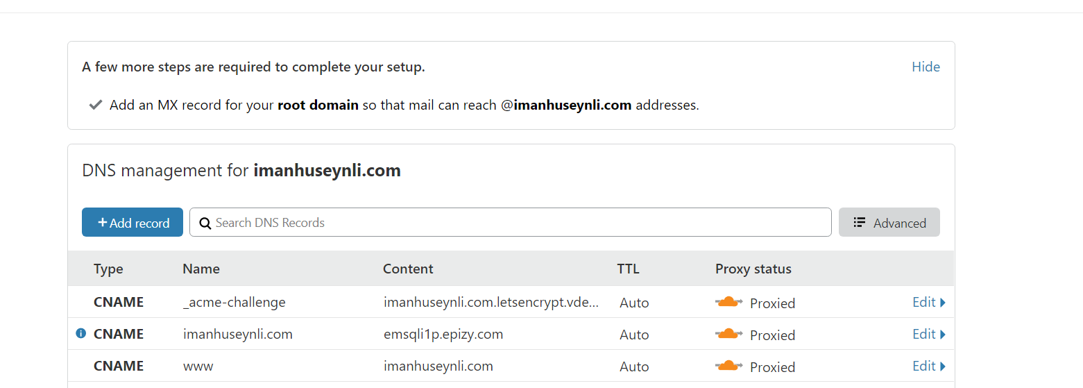 Any issue, screenshot CloudFlare dns
