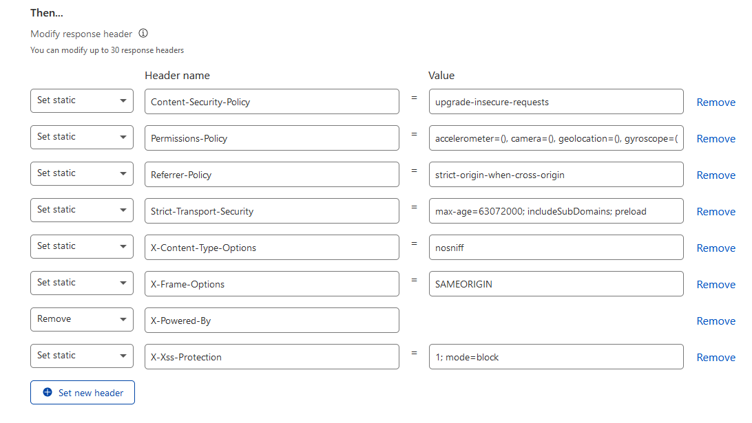 In this ancient post I was stated how security headers can be made through CF workers