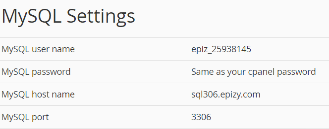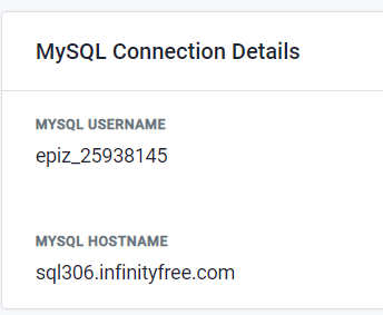 in home page of my account the mysql hostname is shown as sql306.infinityfree.com but in my account setting page the mysql hostname is shown as sql306.epizy.com