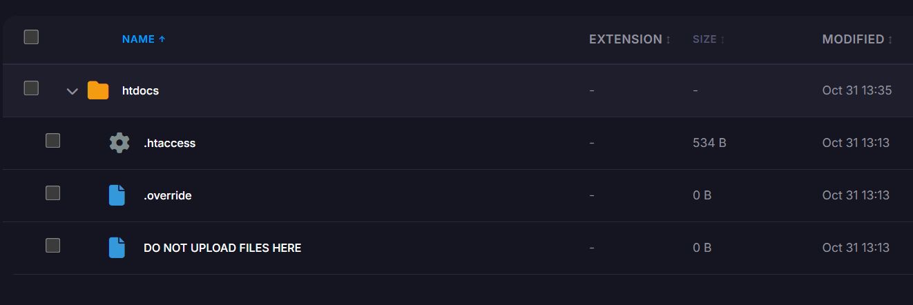 I attach the view of htdocs as I see it on my file manager. I cannot upload anything as you can see