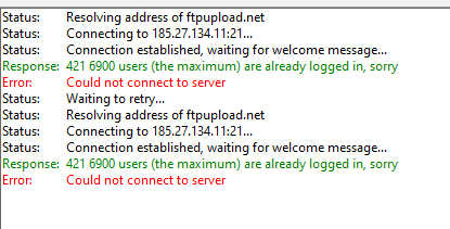 FTP was working yesterday. but as of this morning it is giving an FTP 421 error.