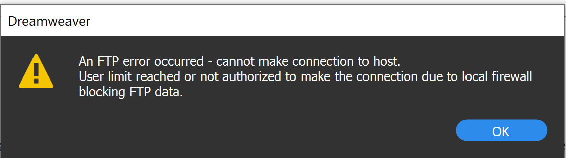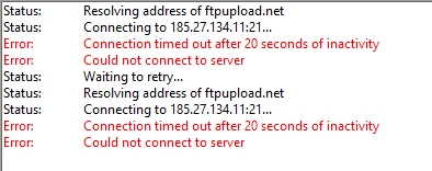 20 Minutes ago the FTP account connects but gives error of connection now out of time