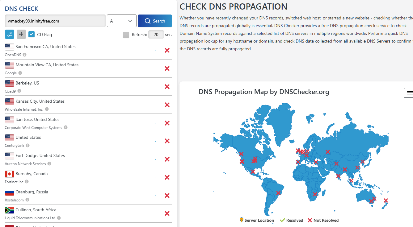 Another possible explanation is that you mistake a domain for another. infinityfree.com is not what we give out as a free subdomain. infinityfreeapp.com or infinityfree.me is.