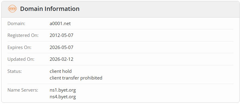 It appears that the actual base domain itself a0001.net is currently down right now. A whois lookup shows that it’s current status is “client hold” so something is going on with it on the registrar side.