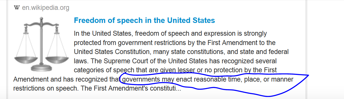 It says that governments may enact reasonable time, place, or manner of restrictions on speech. If we use this logic, then @Admin may enact restriction that are reasonable. Banning Open-source DDOS tools is reasonable, being anti-hacker is reasonable.