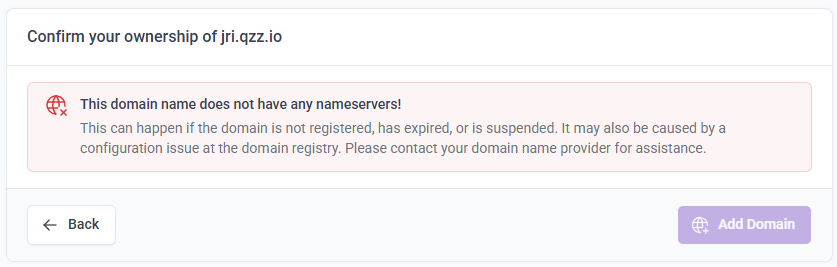 For now, you can add the domain through the control panel instead. It doesn’t have these additional checks so you can add the domain there. I’m only telling you this for qzz.io domains, if there are other cases where domains are incorrectly being blocked, I want to know so I can review the checks.
