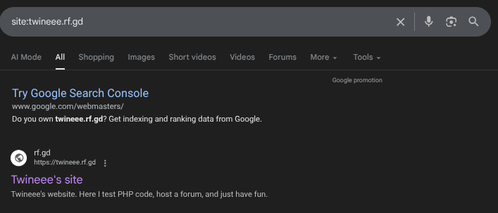 You can also search other free subdomains offered (and custom sites hosted) by IF and see it for yourself. IF sites are indexed by Google and others. If you did not appear in Yandex (yet) give it some time. Your site is quite new and it seems to be still under heavy development. For being so generic, you are lucky Google even considered adding your site. Search engines have their own way of doing things which is relevant or not to any particular query. And these things are not controlled by IF. For being a technical architect and doing SEO stuff, I’m sure you well aware of this.
