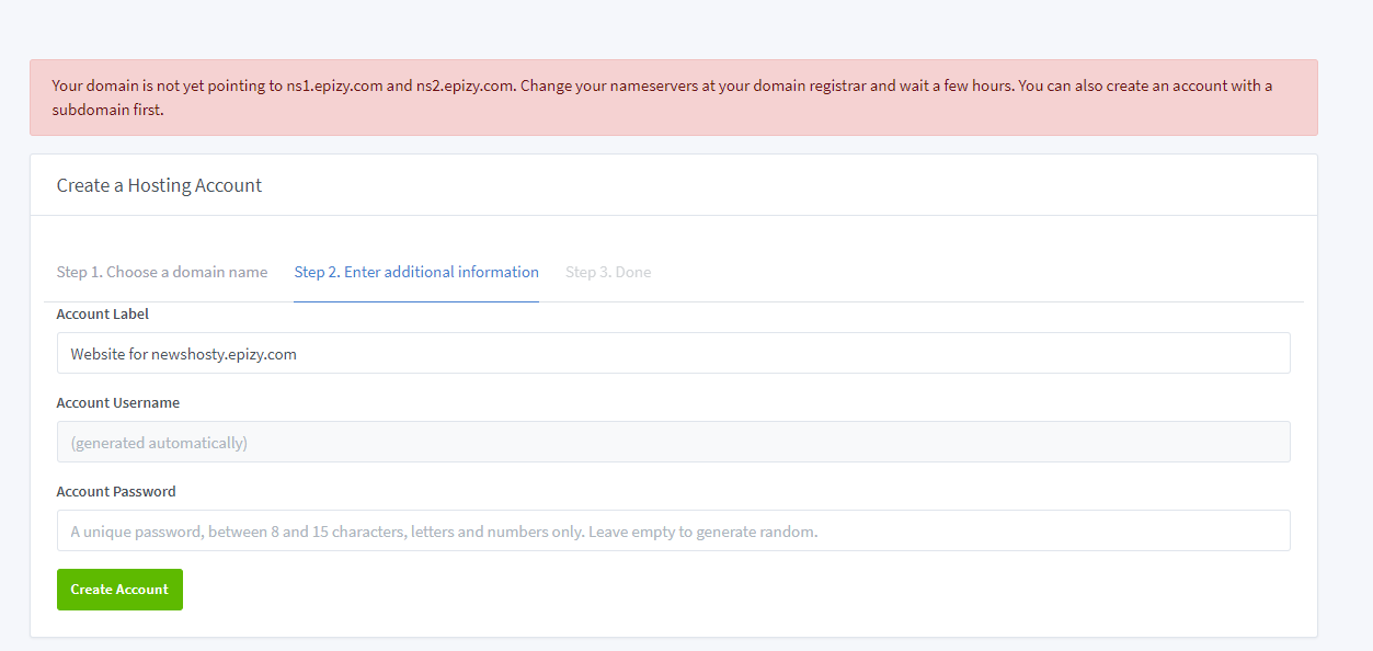 Your domain is not yet pointing to ns1.epizy.com and ns2.epizy.com. Change your nameservers at your domain registrar and wait a few hours. You can also create an account with a subdomain first.
