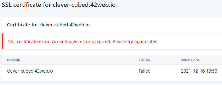 “SSL certificate error: An unknown error occurred. Please try again later.”