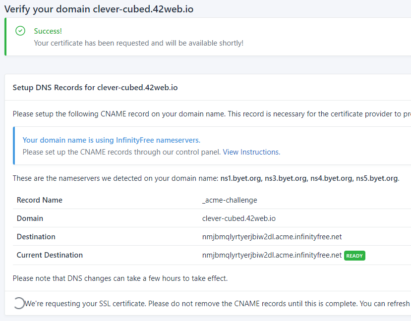 Let’s just follow admin’s cue as to whether we can get ZeroSSL to work within infinityfree.